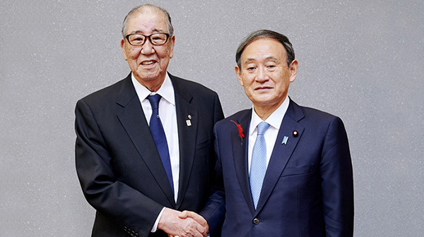 全政連・瀬川信義会長(当時・写真左)は2020年10月、菅義偉前内閣総理大臣を表敬訪問し、税制改正をはじめ不動産取引の電子化推進、コロナ禍での家賃支援給付金等の対応を要望しました。